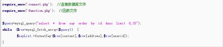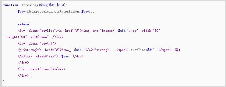 在function.php中有兩個函數,formatSay()用來輸出用戶評論列表,即輸出上文中的HTML。