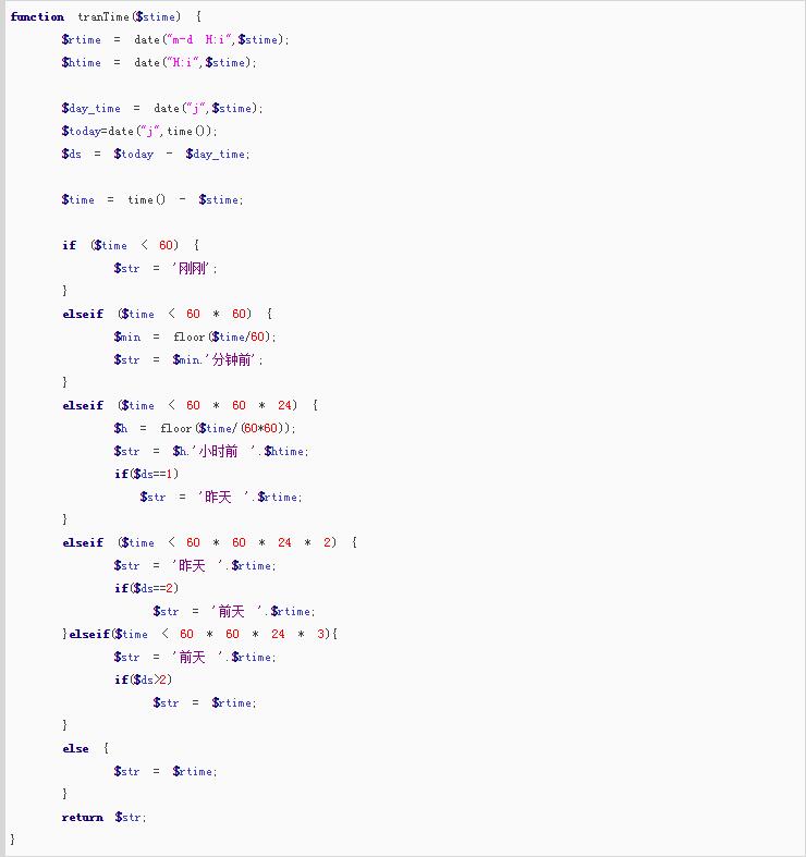 時間軸函數tranTime()將時間轉換成如“1小時前”的格式