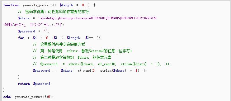 1、預(yù)置一個(gè)的字符串 $chars ,包括 a – z,A – Z,0 – 9,以及一些特殊字符