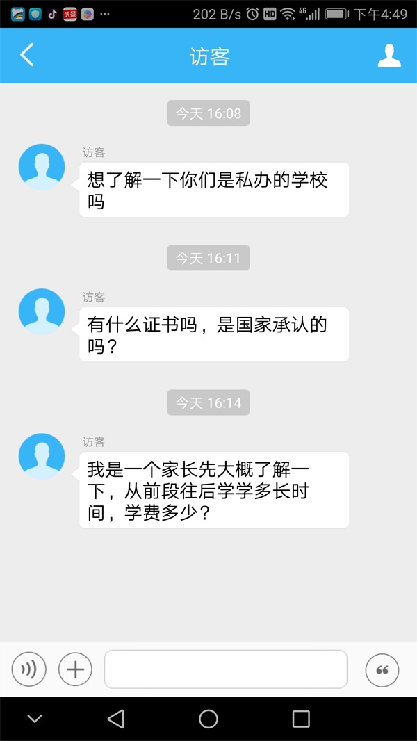 今天下午有一位家長(zhǎng)訪問(wèn)我們網(wǎng)站并在線咨詢了以下幾個(gè)問(wèn)題: