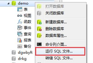 1> 選擇demo數(shù)據(jù)庫->右鍵->運(yùn)行sql 文件->選擇 剛剛 導(dǎo)出的sql->刷新數(shù)據(jù)庫->OK